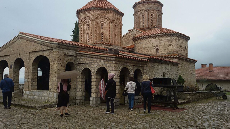 Ohri’de yürüyerek şehir turu yaptıktan sonra otobüs ile Türklerin “Sarı Saltuk,” Makedonların ise “Sveti Naum” dedikleri Arnavutluk sınırındaki dünya mirası listesine giren cennete ulaştık.