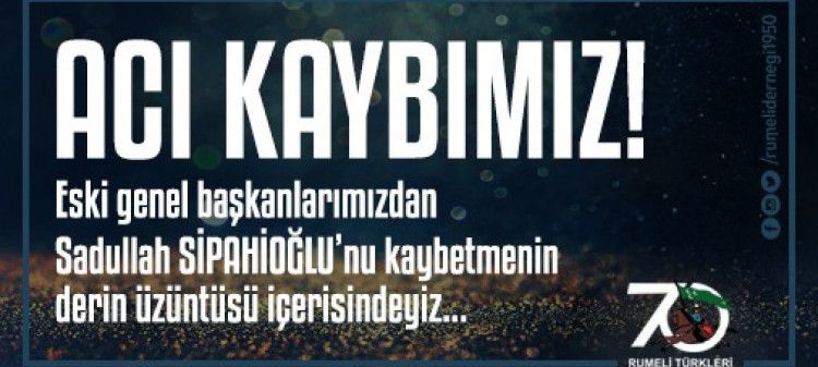 ACI KAYBIMIZ!2009-2013 yılları arasında derneğimizin genel başkanlığını da yapmış olan,adı daima ülkemize ve camiamiza yaptığı sayısız hizmetlerle anılan Sadullah SİPAHİOĞLU ‘nu kaybetmenin derin üzüntüsü içerisindeyiz.Merhuma Allah’tan Rahmet,kederli ailesine ve tüm Rumeli-Balkan camiasına sabırlar ve baş sağlığı diliyoruz.Mekani Cennet Olsun.