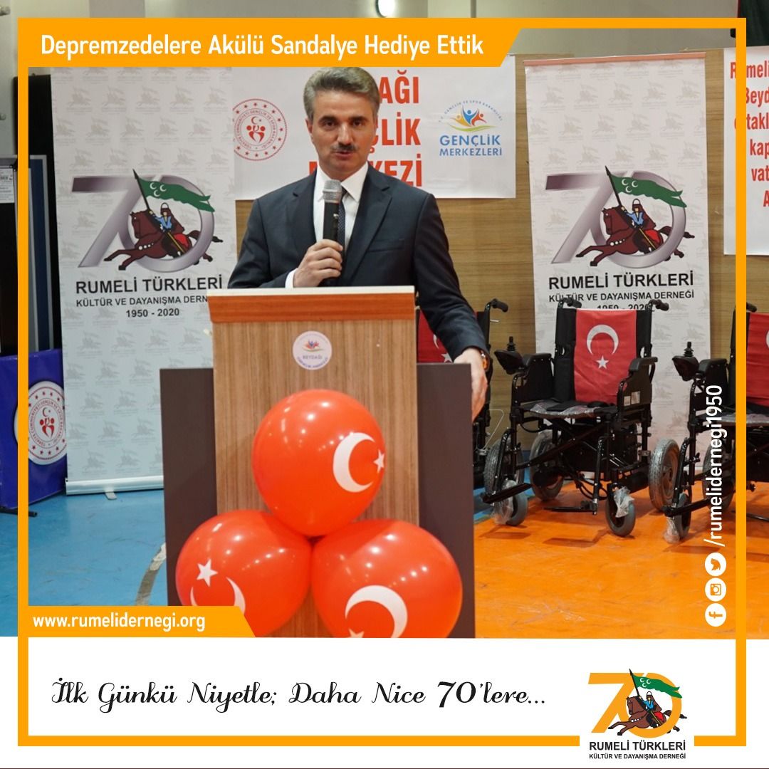 Depremin yaralarını sarmak için bir destek de bizden olsun dedik, 70. yılımızda hediye etmeyi planladığımız 70 akülü sandalyeden 15’ini Malatyalı depremzede kardeşlerimize törenle hediye ettik. Törene katılan Malatya Valisi Sayın Aydın Baruş, İl Emniyet Müdürü Ercan Dağdeviren, Gençlik ve Spor İl Müdürü Ebu Bekir Kayhan, Aile, Çalışma ve Sosyal Hizmetler İl Müdürü Rasim Bulut, İşkur Müdür Vahap Toman ve Beydağı Gençlik ve Spor Kulübü Derneği’ne sonsuz teşekkürlerimizi sunarız.